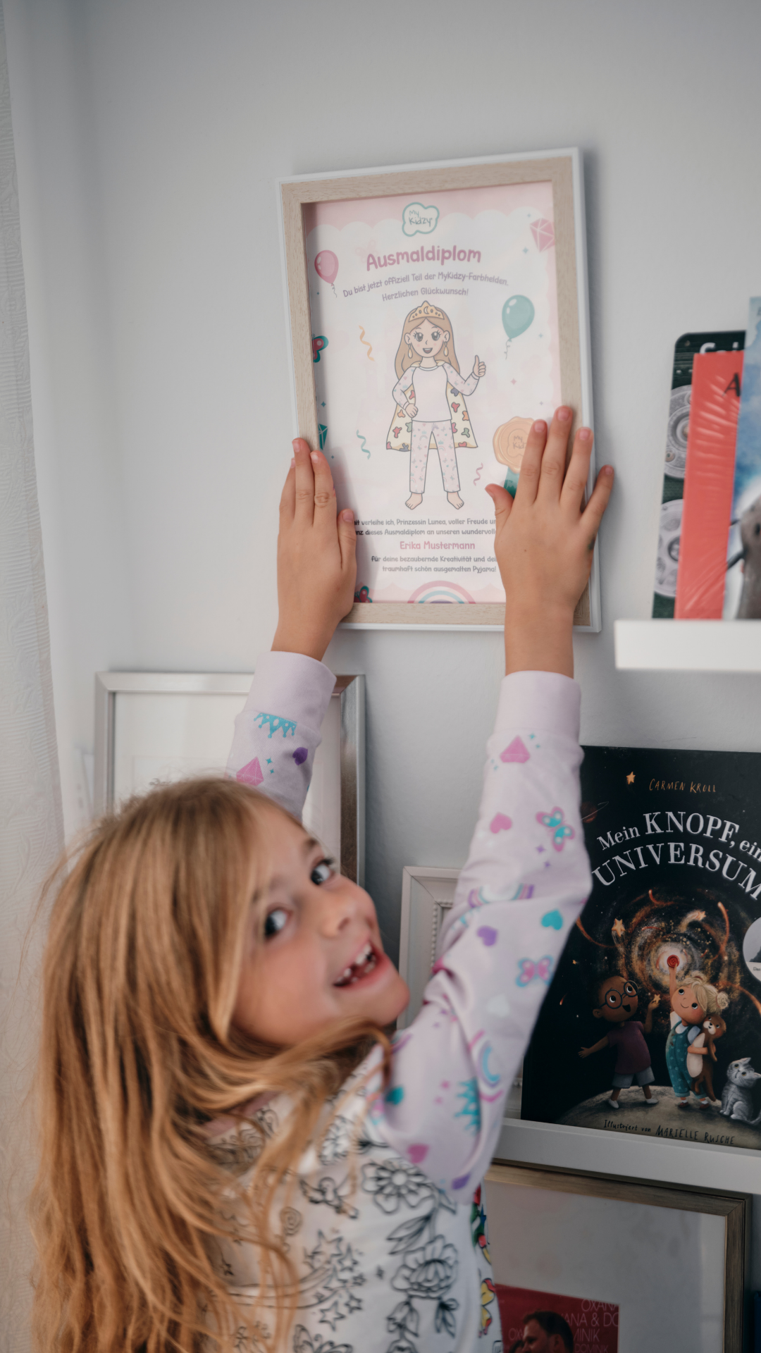 Dein Pyjama-Superheld kann es kaum erwarten, dein Kunstwerk zu sehen! Lade ein Bild deines ausgemalten Pyjamas hoch – und schon bald flattert dein persönliches Ausmal-Diplom direkt von deinem Helden zu dir nach Hause!