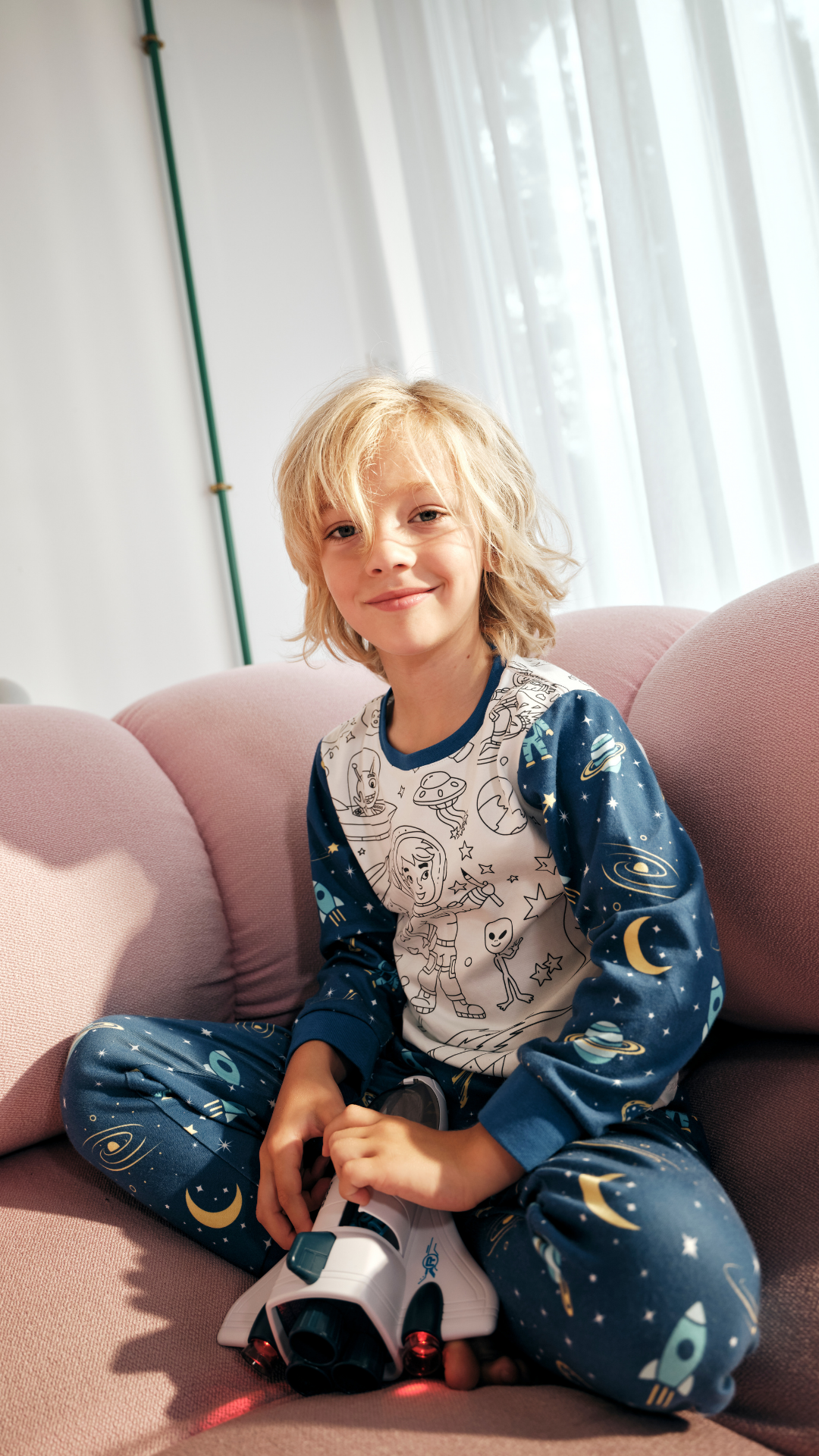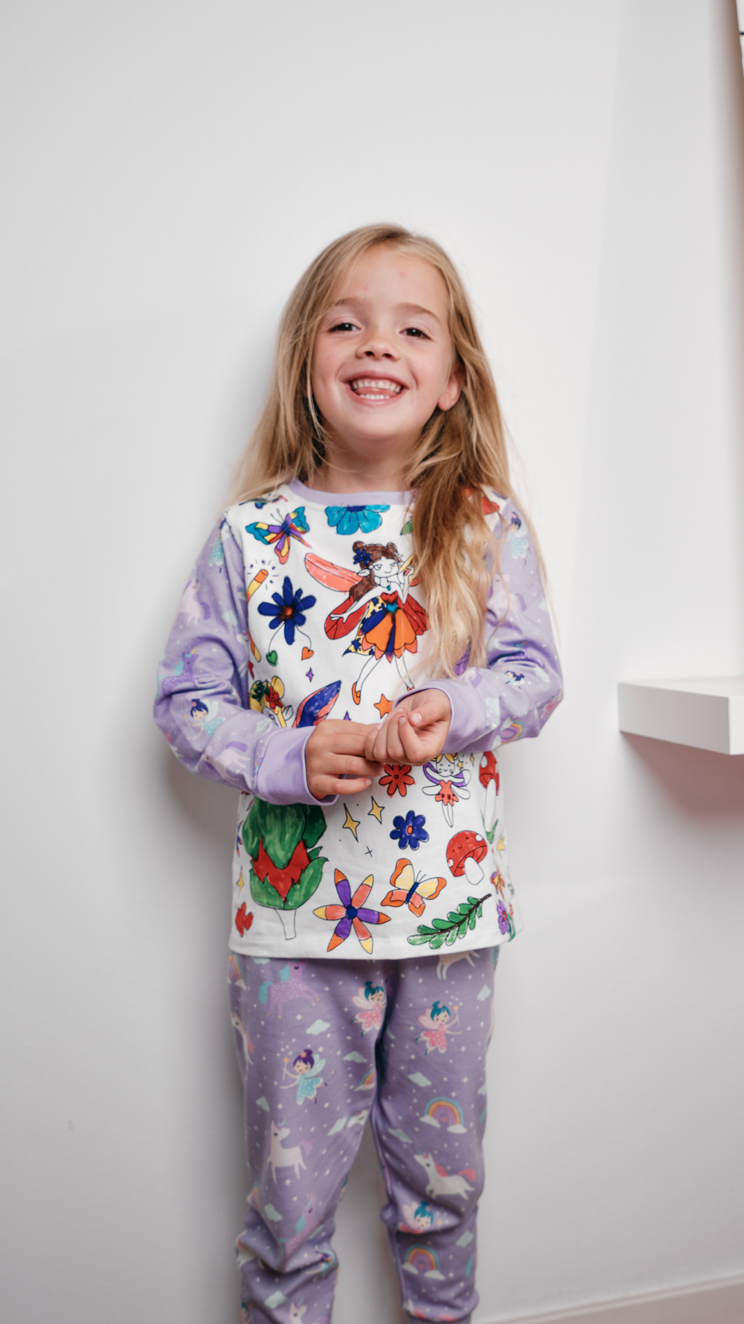 Deshalb haben wir ausmalbare Pyjamas entwickelt, die nicht nur gemütlich sind, sondern Kindern helfen, zur Ruhe zu kommen, stolz ihre Kunstwerke zu tragen und dabei ihre Fantasie auszuleben.