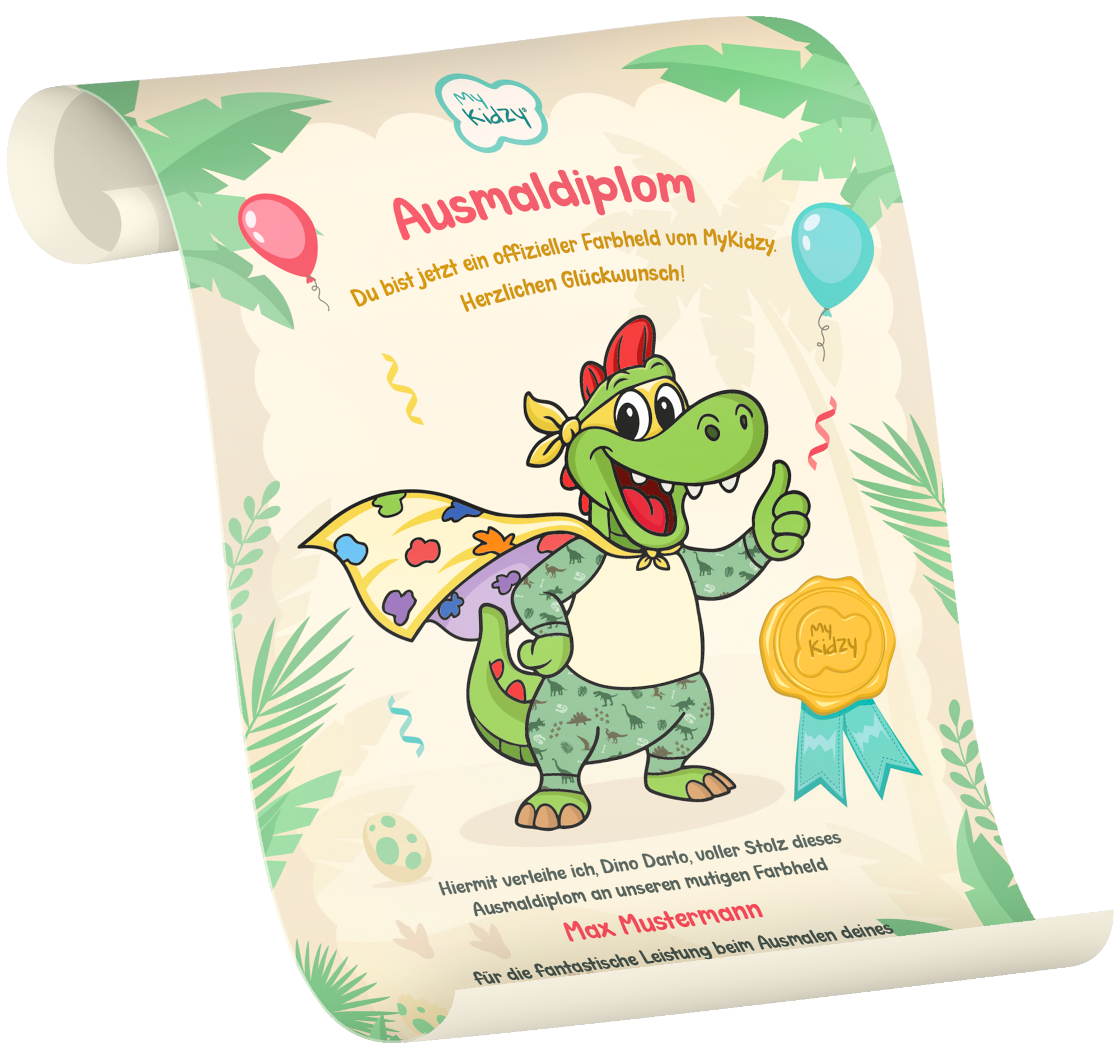Dein Pyjama-Superheld kann es kaum erwarten, dein Kunstwerk zu sehen! Lade ein Bild deines ausgemalten Pyjamas hoch – und schon bald flattert dein persönliches Ausmal-Diplom direkt von deinem Helden zu dir nach Hause!