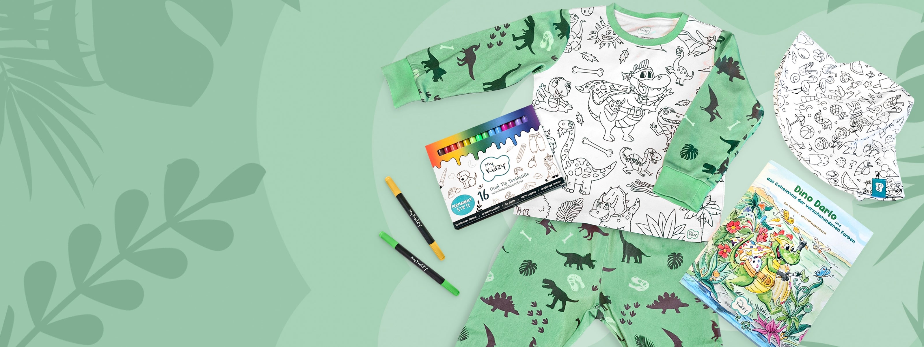 Deshalb haben wir ausmalbare Pyjamas entwickelt, die nicht nur gemütlich sind, sondern Kindern helfen, zur Ruhe zu kommen, stolz ihre Kunstwerke zu tragen und dabei ihre Fantasie auszuleben.